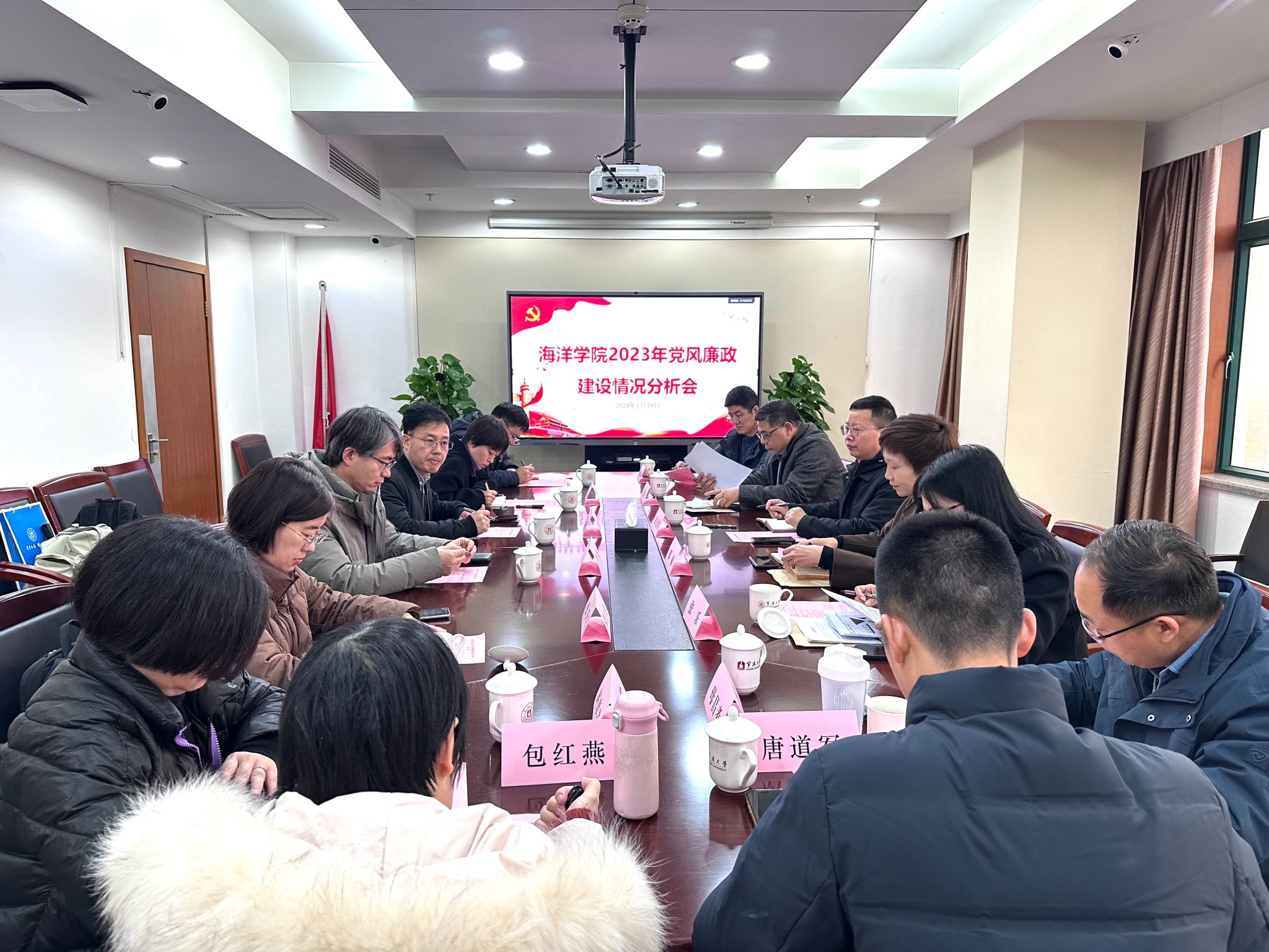 1月19日上午,海洋学院2023年度党风廉政建设分析会在安中大楼712会议室举行。会议主题为“深入推进清廉学院建设,规范学科经费管理使用”。会议由学院党委书记邵丽主持,学院党政领导班子成员、纪委委员、工会主席、内设机构负责人等参加,校纪委委员翁光聪出席指导。