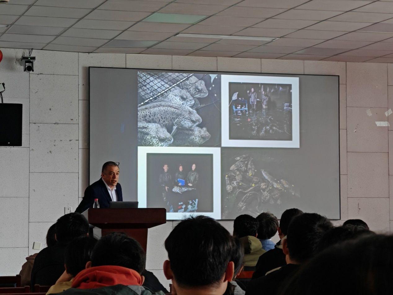 报告中,Jorge Galindo-Villegas教授简要介绍诺德大学的国际合作项目以及学术交流活动,随后,比较了全球各国水产养殖产业发展现状,简述产业前景并剖析了面临的诸多问题,以发展新兴鱼类产业为切入点,介绍花狼鱼的生活习性和性成熟发育周期,深入讲解他在花狼鱼生殖细胞保存技术开发、繁殖周期探索以及相关分子调控机制的研究历程。他还鼓励现场师生关注Aquaculture期刊并参与论文审稿工作,积极参加国际鱼类和贝类免疫学会的学术交流活动,并耐心回答了师生们实验设计以及论文投稿过程中遇到的问题。本次学术交流由午夜av