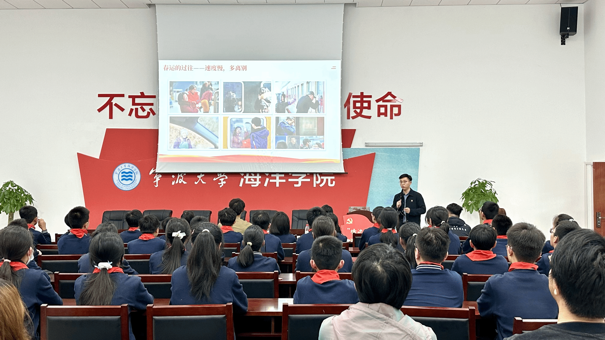 活动在思政微课宣讲中拉开帷幕。水产养殖硕士研究生第一党支部书记余杰同志以一年一度的春运为缩影,从陆地到太空再到深海,以中国高铁的自主创新发展、神州载人飞船幕后英雄——宁波单项冠军企业专注研发和午夜av