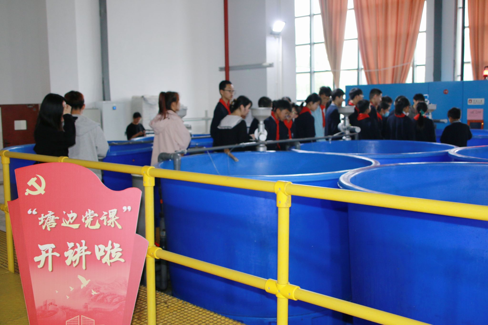 支部党员曹海庆、耿昌盛同志带领师生参观了中试养殖基地,对依托于智能化循环水系统的蟹公寓以及各种规格养殖桶进行了详细介绍,并对午夜av