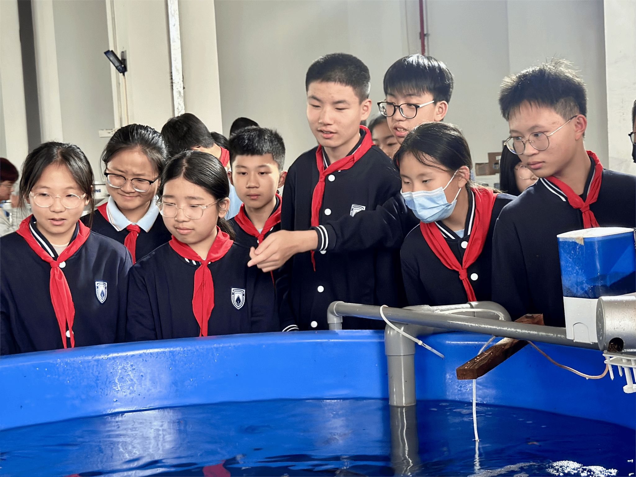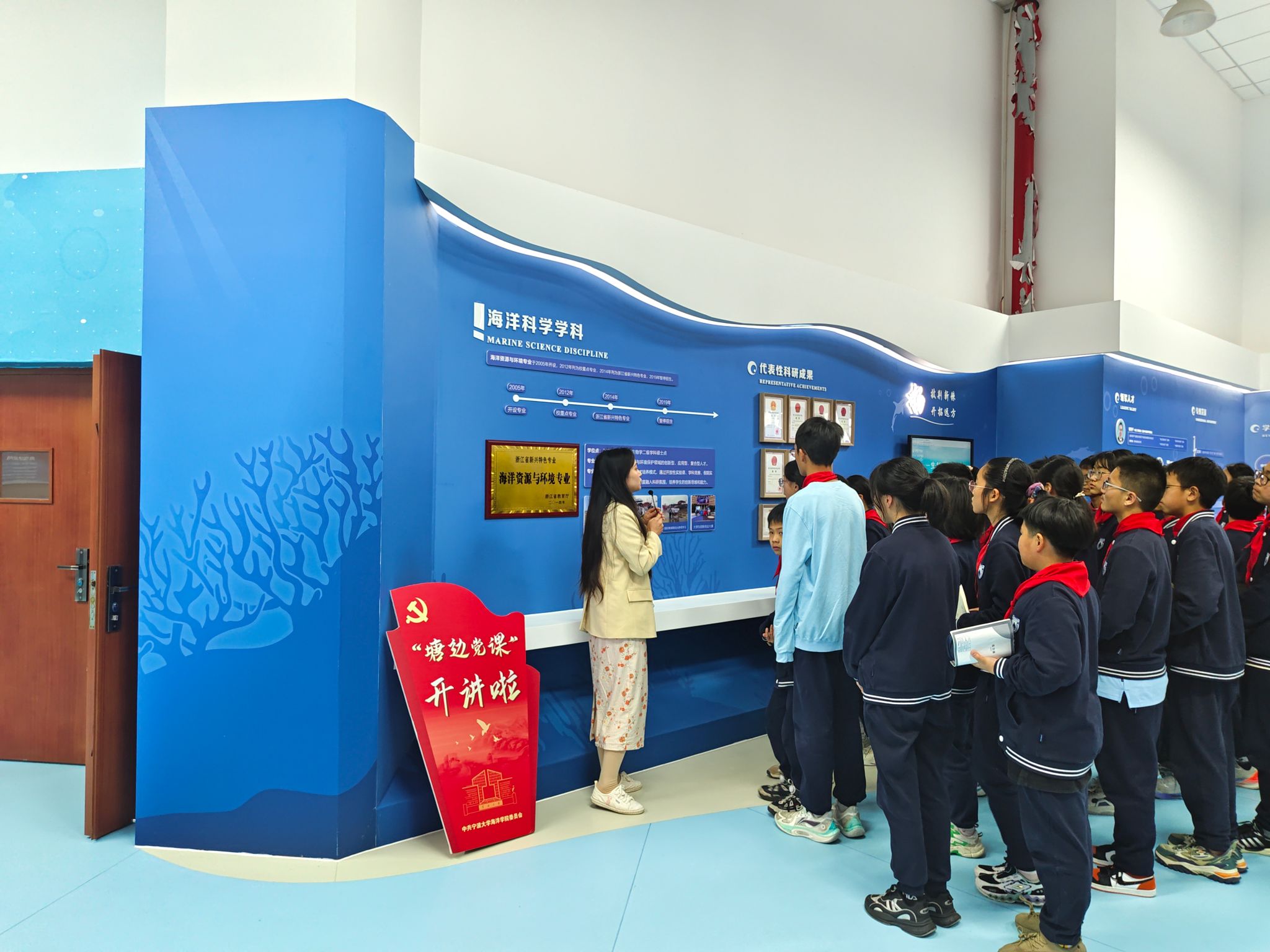 附属春晓实验学校团总支书记胡炜、教师袁亦婷和七年级学生代表共计50余人受邀进校,共同开展思政理论宣讲和海洋科普活动,将理论学习与实践参访相结合,助推大中小学思政教育一体化建设。