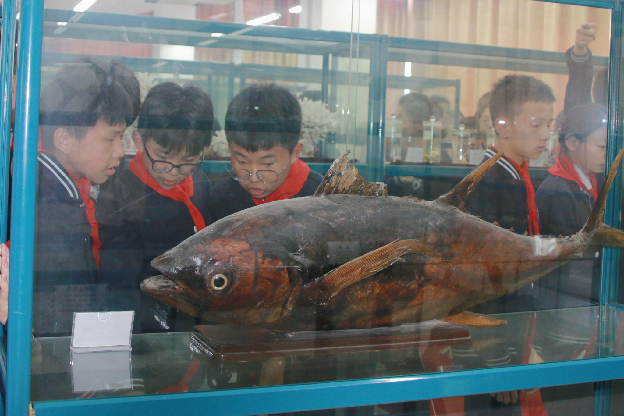 支部党员景涛、刘海萍同志向参观人员重点介绍了生物标本馆中陈列馆中重120多斤,全长两米二的“镇馆之宝”中华鲟标本的来历以及寄居蟹、银鲳、海星、珊瑚、金枪鱼和锯缘青蟹等各生物的生活习性和活动范围,并给大家介绍了学院王春琳教授和王亚军教授团队所获的科研成就。