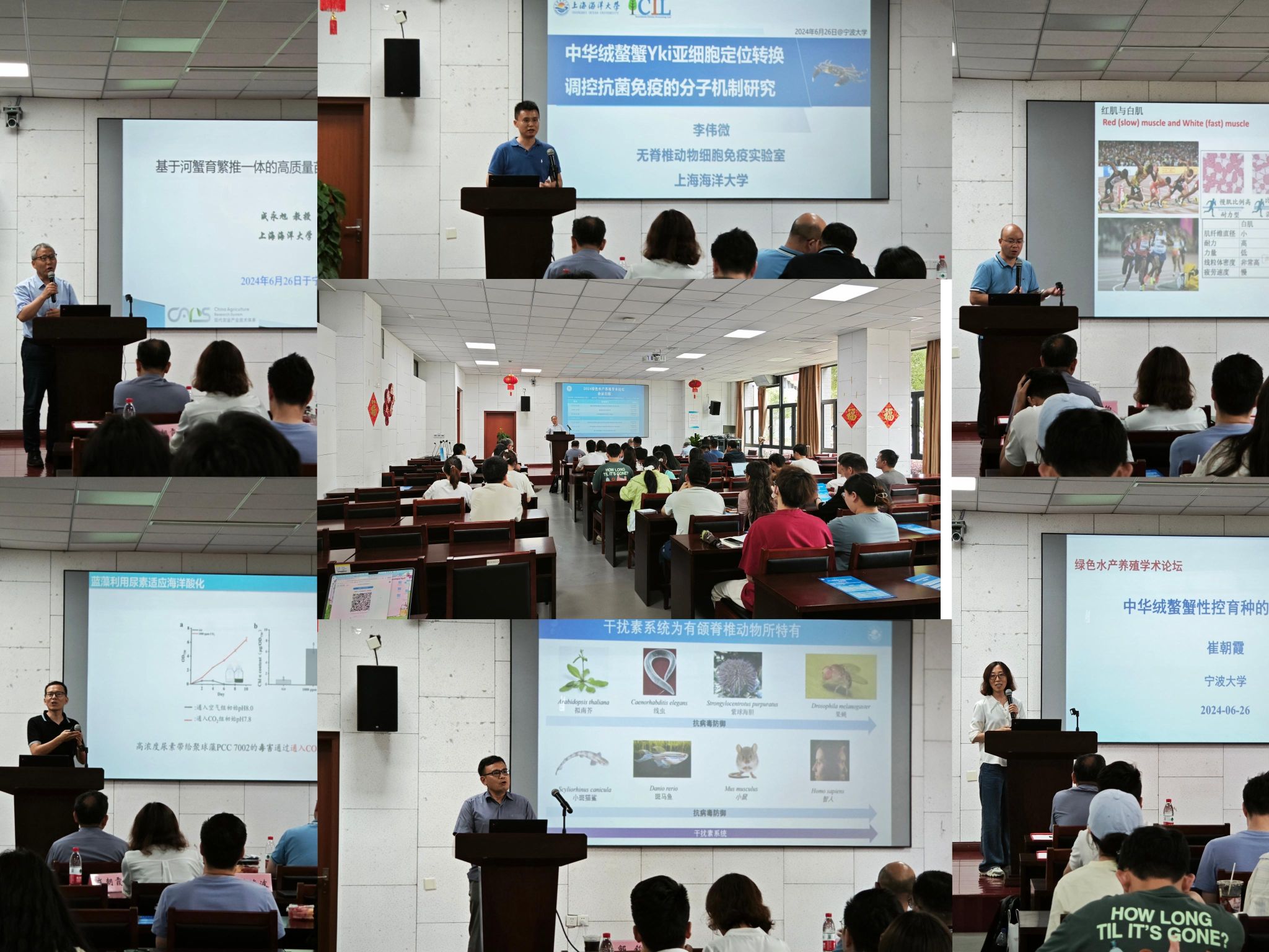 学术领军姜海波教授作了“尿素排放与海洋酸化耦合作用下近岸海域浮游植物的生理生态学响应”、上海海洋大学国家优青获得者李伟微教授作了“中华绒螯蟹Yki亚细胞定位转换调控抗菌免疫的分子机制研究”、上海海洋大学国家产业体系岗位科学家成永旭教授作了“基于河蟹育繁推一体的高质量苗种生产技术”等6场专题报告。本次论坛由午夜av