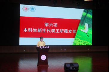 老生代表、2022级硕士研究生聂文灏分享了自己在科研和学生工作方面的经验,并鼓励新生们保持对学习与生活的热情,积极面对挑战。