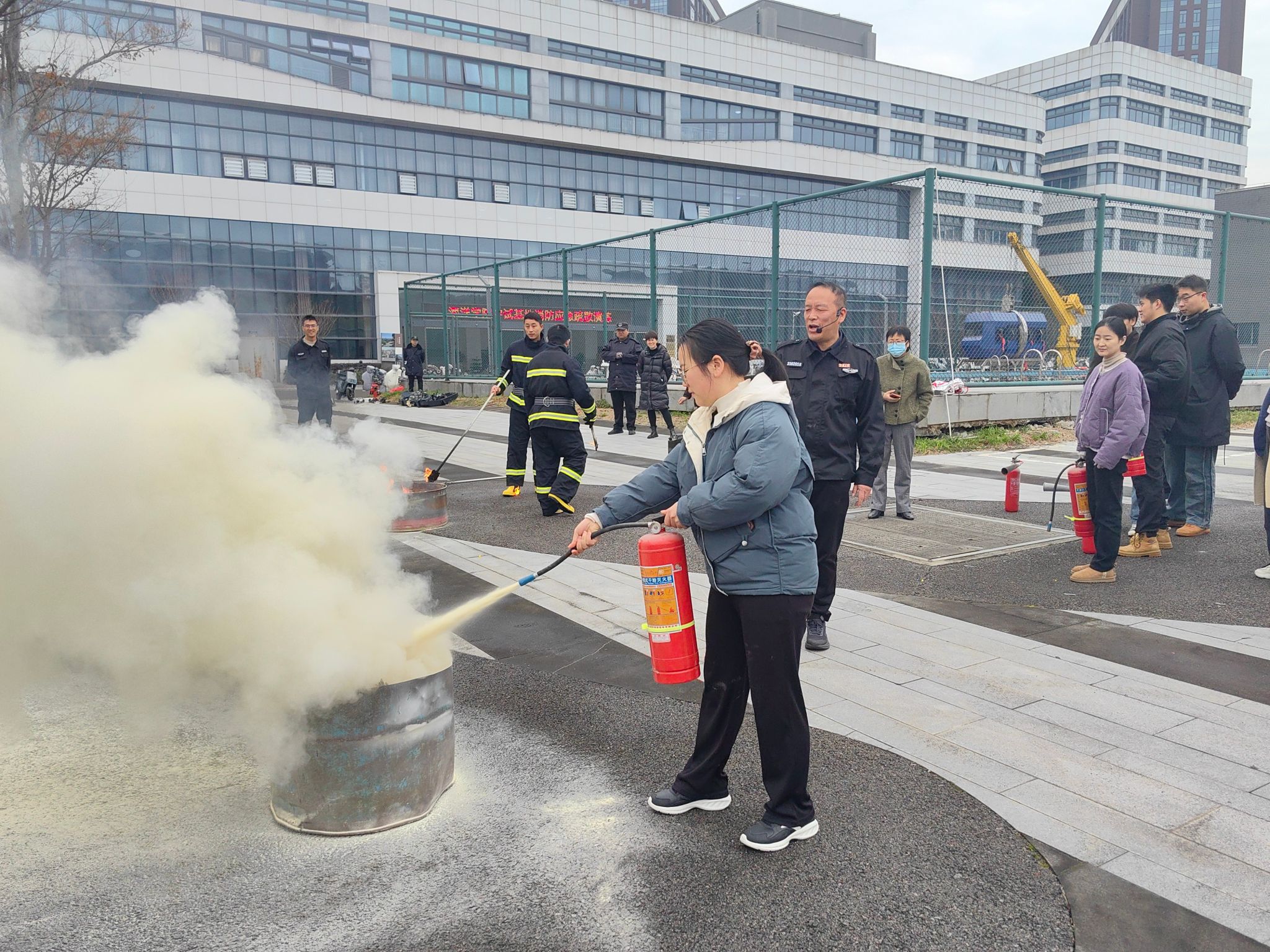 师生的消防安全意识和应急处理能力,确保中试基地的实验安全,在梅山校区保卫部的大力支持下,开展了消防应急演练。资产与实验室管理处彭韬明老师、学院实验室安全员郑芳老师、中试基地段雪梅老师及110余名学生参加了本次演练。