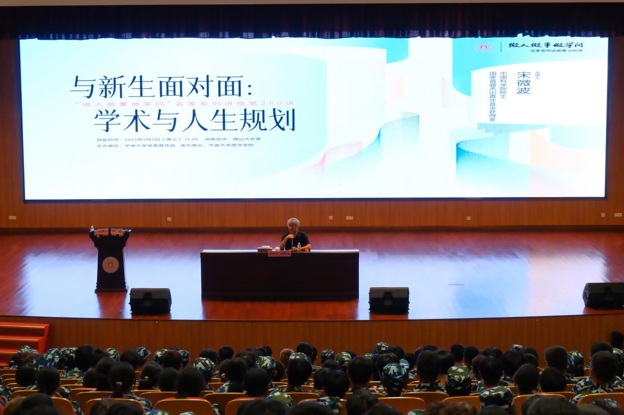 讲座中,宋院士结合自身学术生涯与人生阅历,为新生们提出两点殷切期望。一方面,他强调“进入大学后要经常主动为自己做规划”。宋院士指出,大学与小学到高中的学习模式截然不同,缺乏明确的外部规划引导,若想避免陷入 “随波逐流” 的困境,必须主动思考学业方向、能力提升路径与长远人生目标,通过阶段性规划明确每一步的努力方向,让大学时光更具针对性与价值感。另一方面,他呼吁新生 “建立判断性思维,睁开眼睛去思考去实践”。面对海量信息与多元观点,宋院士提醒同学们切勿盲目跟风、被动接受,要学会独立分析、理性判断,既要深入钻研专业知识,也要关注社会现实与学术前沿,在思考和实践中形成自己的认知体系。