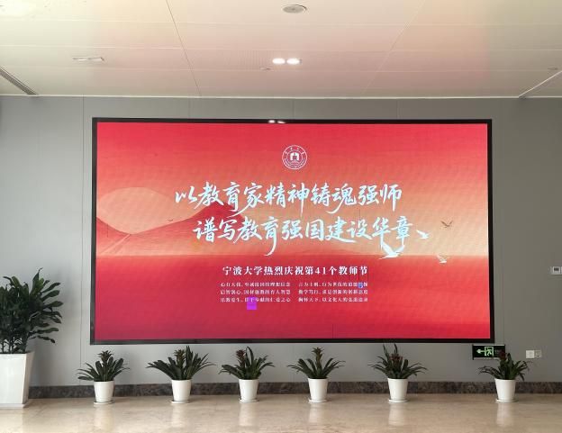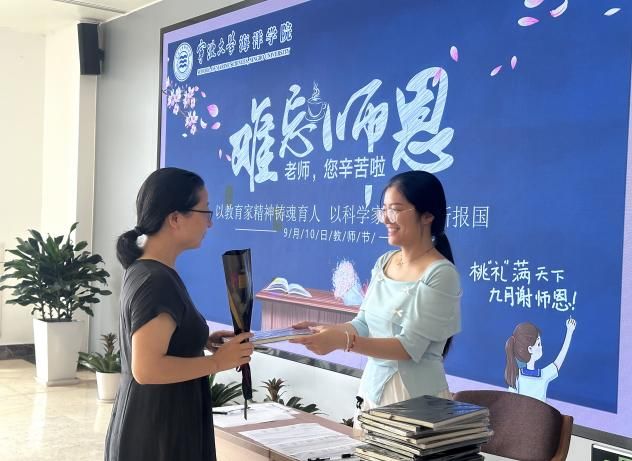 东楼背景屏上,“以教育家精神铸魂强师,谱写教育强国建设华章”“老师,您辛苦了!” 等标语格外醒目。柔和的灯光与暖心的文字交织,将尊师重教的氛围延伸至校园每个角落,既让教师感受到节日的礼遇与尊重,也在潜移默化中引导学生厚植敬师爱师情怀,为学院营造了良好的育人环境。