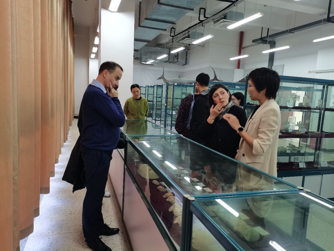 代表团率先前往中试基地,实地考察科研中试基地、学科建设及院史馆。在生物系主任陈娟娟与水产系主任史策的陪同介绍下,代表团详细了解基地在生物研发、水产养殖等领域的技术应用与产业化进展。