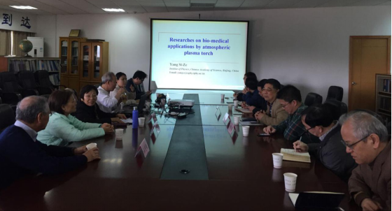 会中,杨思泽对大气压等离子体在生物医药方面的研究应用做了汇报,分别介绍了大气压等离子体的制备设备、等离子在杀菌方面的应用、等离子体在癌症治疗方面的应用等。赵桂芬、施宪霖对海水淡化技术进行了介绍,详述了海水淡化的发展和现有技术水平,希望在海水淡化方向与午夜av