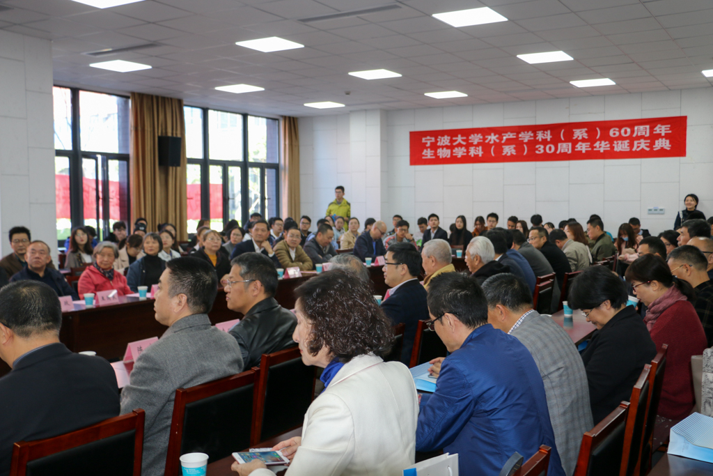 梅山校区竺银康楼107举行水产学科(系)60周年、生物学科(系)30周年华诞庆典,学科老教师代表、校友代表和师生代表共120余人参与庆典,午夜av