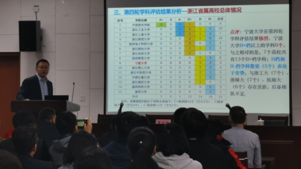 报告会上戴院长介绍了学科评估工作概览,并就浙江省属高校的总体情况针对第四轮学科评估结果进行了分析。在对比分析过程中,戴院长向教师们指出了午夜av