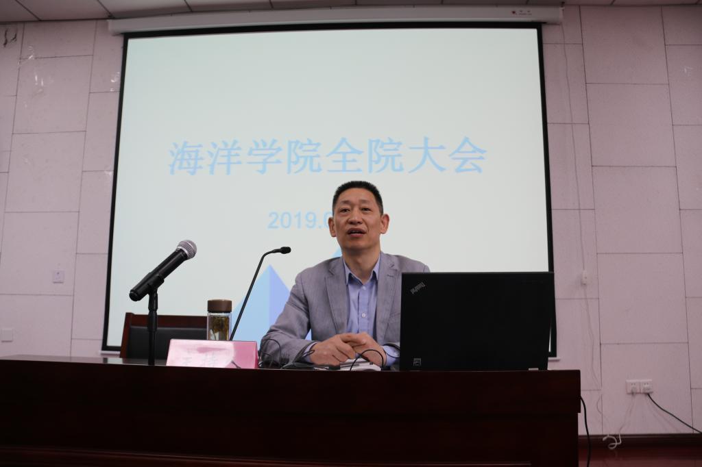 在竺银康楼一楼报告厅召开全院大会,学院党政领导和全院教职工参加了会议,会议由党委书记蔡真亮主持。院长王春琳对学院第七轮聘任文件进行了解读,并就研究团队的组建与考核做了详细说明,同时对行政教辅岗位的聘任情况进行了通报。会上,王春琳表示第七轮聘期相比上一轮任务更重、质量更高,这对学院学科建设和发展提出了更高的要求。水产学科冲A以及生物学博士点的申报需要全体老师一起努力。随后,学院各分管领导就学院科研、本科生和研究生教学与培养、地方服务、学生工作等方面做了具体部署。