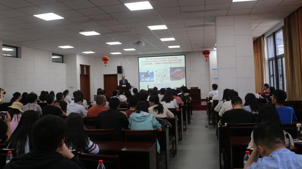 聘任仪式结束后,朱嘉濠为在场师生作了题为《生命树拾趣:追溯鲸鱼和寄居蟹的进化历史》的学术报告,并与在场师生进行问答互动。