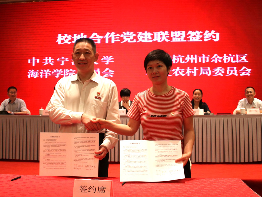 党委与余杭区农业农村局党委签定校地合作党建联盟合作书,正式建立起校地党建互动合作关系,为推动高校人才流入村社,加快农村科学技术推广,提升农业骨干人员培养搭建起平台。