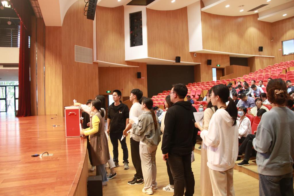 在工作人员核对完人数后,党员大会正式开始。本次会议应出席党员224人,实到203人,符合规定人数。蔡真亮同志宣读了大会的五项议程:一、近期学院党建工作通报;二、通过大会选举办法;三、通过党代表候选人名单;四、通过监票人、总监票人名单,宣布计票人名单;五、进行大会选举。