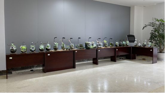工会小家里已然呈现一片盎然的绿色,使人感受到阵阵春意和勃勃生机。在这里,学院分工会组织开展了 “方寸水景、海洋情深”微型水草景观瓶制作活动,庆祝2021年“三八”国际劳动妇女节。