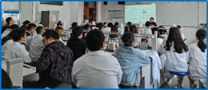 刘博士首先向学生简单讲述了微流控芯片的发展历史,认为等温扩增技术的成熟助推了微流控芯片在核酸即时检验中的快速发展和应用,也详细讲述了微流控芯片在我国各检测领域的应用情况。同时,刘博士以《人宠共患病多联微流控芯片快速检测》的应用实例(模板为目标基因重组质粒,无风险),详细阐述了微流控芯片根据市场需求个性化灵活设计的理念,向同学们演示了微流控芯片的加样操作、仪器使用、结果判读及数据输出,并对学生的现场操作进行了具体指导。2018级生物技术本科生参与了学习与交流。