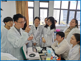 叶老师先后向学生系统性讲授了离心式微流控芯片的设计理念、检测原理、方法优势及市场需求,微流控芯片在农药残留快速检测中的示范与推广,以及纸芯片分析系统的设计初衷、适用领域及优劣势。同时叶老师向同学们先后演示了微流控芯片检测农药残留的加样操作,仪器使用及结果判读,简易纸芯片分析系统的制作,加样操作及结果判读;在理论讲座后,叶老师并对学生的现场操作进行了具体指导。2018级生物技术本科生参与了学习与交流,通过讲座和实操,增进了学生在微流控芯片检测技术的知识,培养了学生在微流控芯片相关技术的应用实践能力。