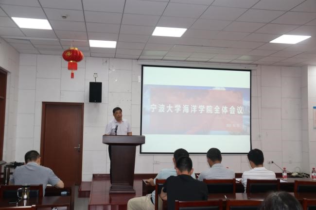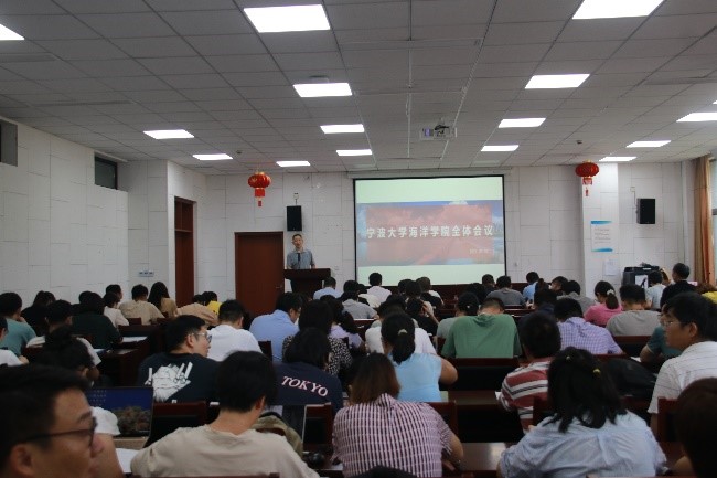 在竺银康楼107报告厅召开新学期全院教职工大会,会议由学院党委书记蔡真亮主持。