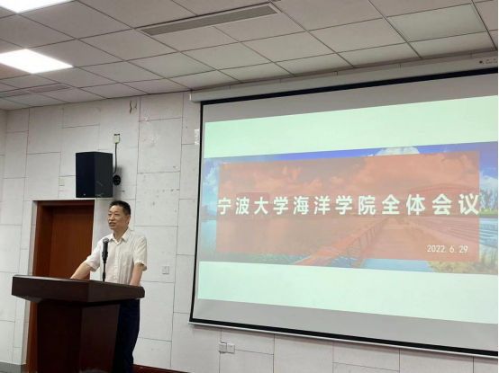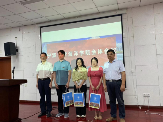 召开了全院教职工大会,本次会议由学院党委书记蔡真亮主持。会议首先举行了一个简单却温馨的新进教师欢迎仪式,仪式由学院院长王春琳为新海洋人佩戴校徽、赠送礼品。