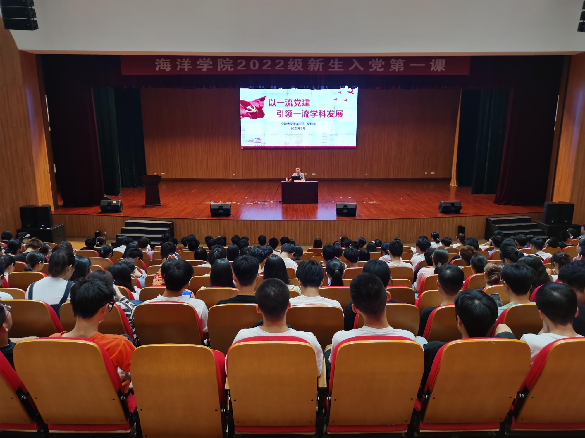 党委书记蔡真亮老师以“以一流党建引领一流学科发展”为主题在梅山大会堂为学院2022级新生开启入党第一课。