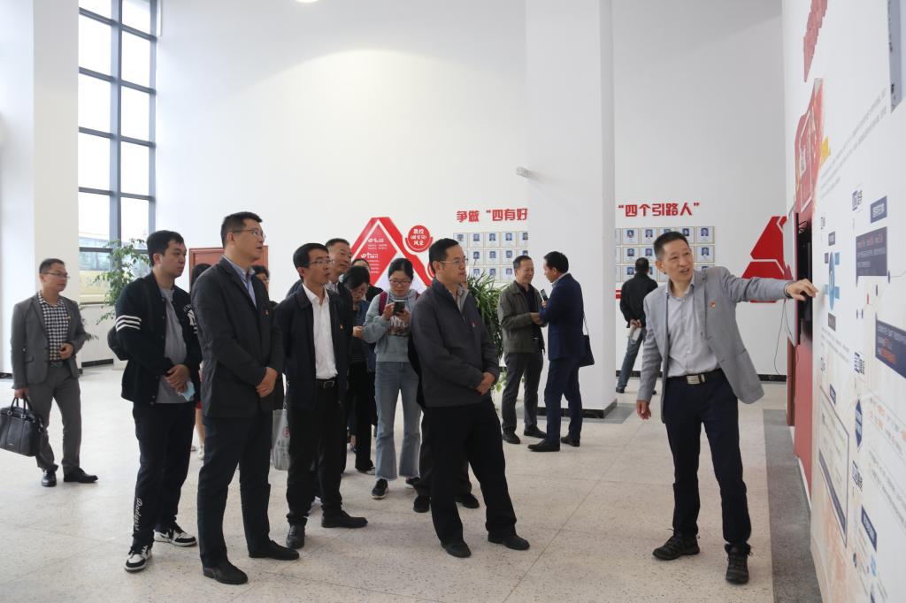 10月22日上午,象山县科技局党组书记、局长江立峰一行26人来午夜av 党建馆参观交流,党委书记蔡真亮、院长王春琳、院长助理方芳接待了来访客人。
