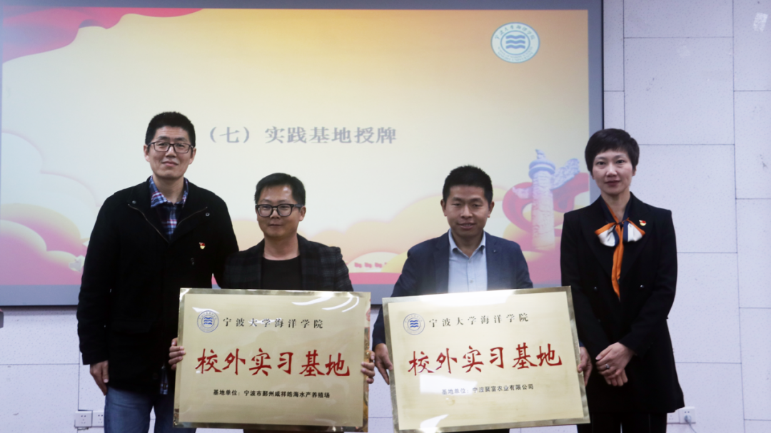 活动中,2007级校友孙思志作为企业负责人分享了自己的创业经历,因为热爱一直坚守水产行业梦想,为同学们树立了良好的专业信心。同时他嘱咐同学们在实习过程中要提高安全意识,服从导师安排,养成良好的作息习惯。学院党委书记邵丽、副院长陈相瑞为校友企业授牌校外实习基地,副院长陈相瑞、副书记张乐、系主任史策为出征班级授旗。最后,活动在全体同学庄严宣誓中落下帷幕。