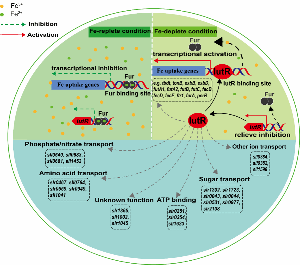 图2:转录因子IutR在蓝藻铁稳态中的调控机制示意图