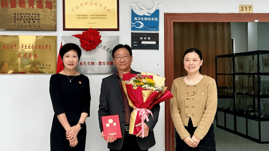 党委书记、学院关工委主任邵丽和校关工委常务副主任冯志敏共同为科普(水生生物)教育基地揭牌。