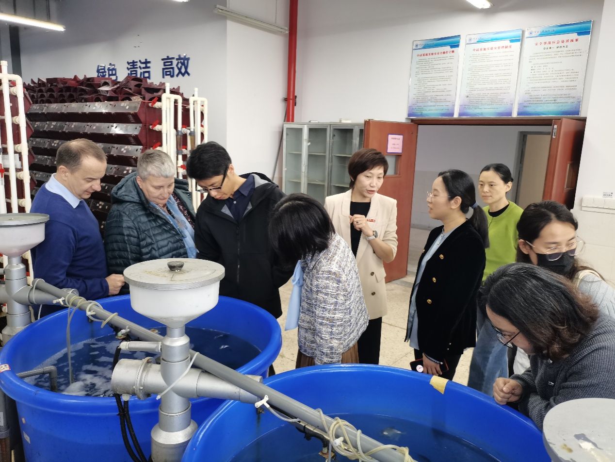 代表团率先前往中试基地,实地考察科研中试基地、学科建设及院史馆。在生物系主任陈娟娟与水产系主任史策的陪同介绍下,代表团详细了解基地在生物研发、水产养殖等领域的技术应用与产业化进展。