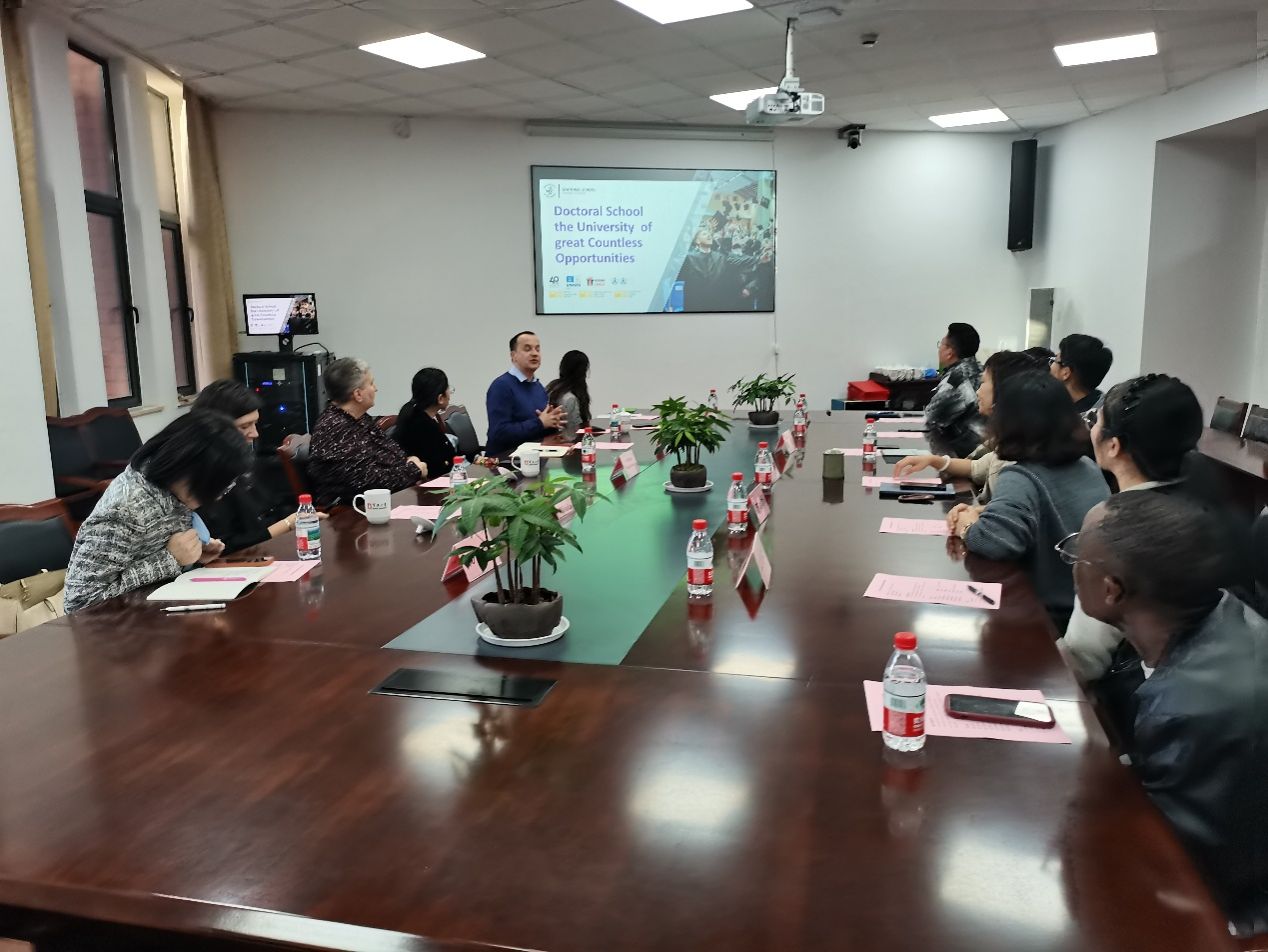 介绍学科布局、师资力量及国际合作现状;生物系主任陈娟娟重点展示了生物学科的发展历程、人才培养及科研成果等;Kinga Flaga-Gieruszyńska 教授介绍什切青大学的办学特色、人才培养及国际交流愿景;Jarosław Korpysa 教授就学校的博士培养体系及国际生项目展开了详细介绍解读。